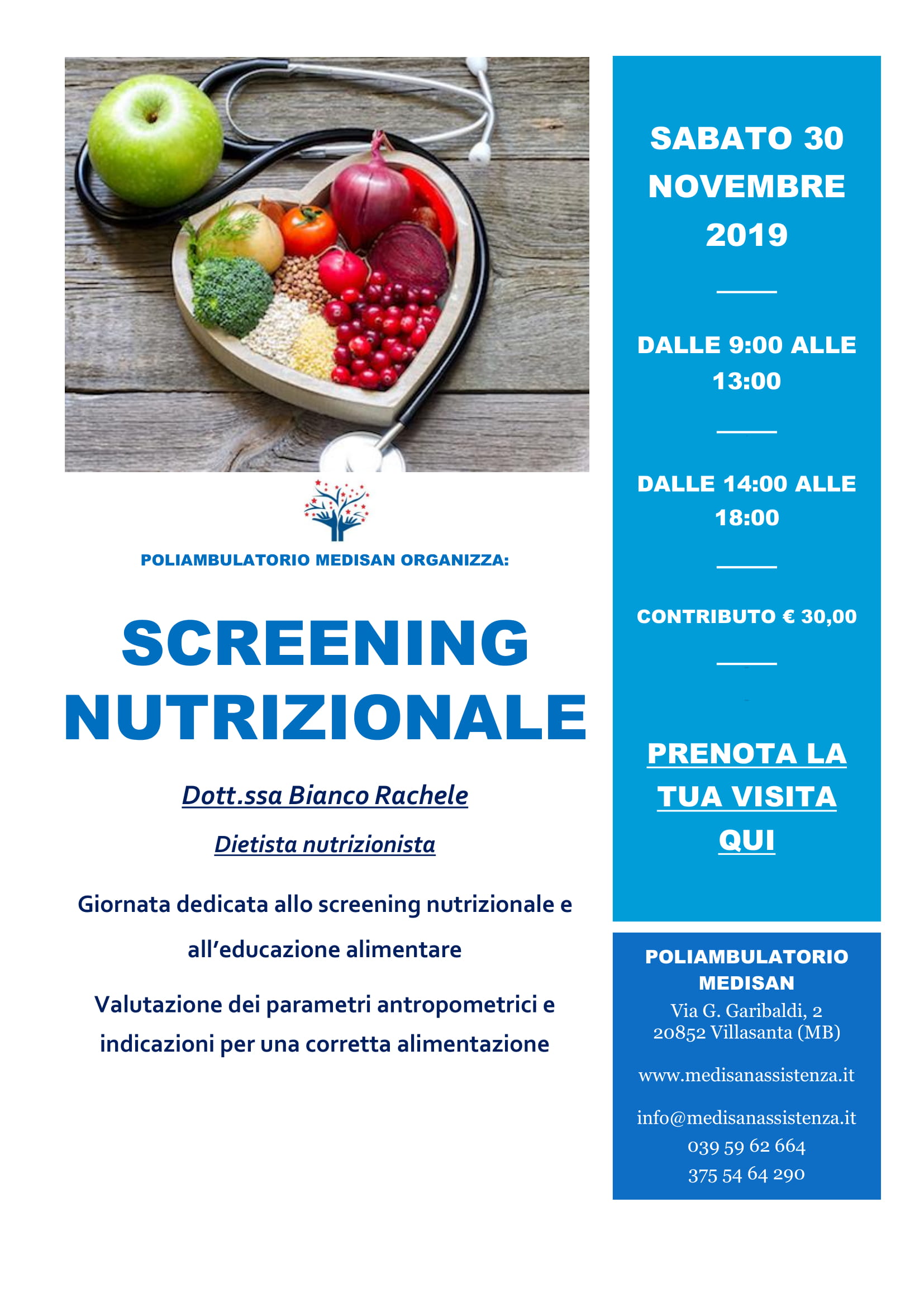 Category: EventiBy Blog EditorOctober 23, 2019 Author: Blog Editor Post navigationPreviousPrevious post:Screening Allergie a Villasanta 30/11/2019NextNext post:Screening Osteopatico a Villasanta 01/02/2020Articoli similiYOGAJune 18, 2021GIORNATA DI CHIRURGIA PLASTICA ED ESTETICA 24/06/2021June 1, 2021GIORNATA DI SCREENING DEDICATA ALLA NEUROCHIRURGIA 29/05/2021May 5, 2021GIORNATA DI SCREENING DEDICATA ALLA MAPPATURA DEI NEI 29/05/2021May 5, 2021Tampone Molecolare PCRApril 21, 2021Screening Neurochirurgico 17/04/2021March 30, 2021